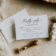 Perfecto para un boda moderno, estas tarjetas caligráficas RSVP cuentan con un guión elegante y un diseño minimalista en blanco y negro, además de la opción para que los huéspedes elijan su elección de comida.