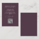 Invite a sus invitados a responder fácilmente con esta sofisticada tarjeta de código QR basada en texto. El rico color de ciruela le aporta un toque de romanticismo y elegancia a sus invitaciones. Este moderno diseño ofrece una forma sencilla y directa para que los huéspedes puedan acceder al formulario RSVP de su sitio web boda. Simplemente escanee el código QR para obtener acceso instantáneo y racionalice la planificación de su boda.