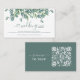 Página web del boda de código QR del Personalizado de ecología de Eucalyptus, tarjetas RSVP en línea. Invite a amigos y familiares a su día especial, y haga el proceso de respuesta tan fácil con nuestras tarjetas de gabinete RSVP de nuestro boda de código QR personalizado. Estas modernas tarjetas de rsvp botánicas de eucalipto en línea son la forma perfecta de responder a sus invitaciones nupciales. Además de mantener a los huéspedes al día en los detalles, podrá acceder fácilmente a la página web de su boda. Consulte nuestra colección de bodas Eucalyptus para conocer las invitaciones de boda y los suministros para fiestas de boda. DERECHOS RESERVADOS © 2020 Judy Burrows, Black Dog Art - Todos los derechos reservados. Tarjeta RSVP del sitio web del Boda del código QR verde Eucalyptus