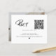 Menos molestias, no falta el correo cuando invitas a tus invitados a RSVP en línea con tu código QR que los envía directamente a tu sitio web boda. El diseño presenta un minimalista, sencillo, creativo en blanco y negro con un moderno y elegante guión RSVP caligrafía. Siga fácilmente las instrucciones para insertar la dirección URL de su sitio web boda en el ejemplo de código QR anterior. Eso es todo lo que hay.