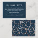 Un moderno monograma recibe el resplandor con anillos de boda de oro rosa entrelazados y un texto personalizado que lo convierte en una nueva suite clásica de invitados a la boda con texto simplificado en blanco y azul marino limpio. Personaliza todo el texto de esta tarjeta de inserción de RSVP en línea y ayuda a dirigir a tu invitado a tu sitio web boda mientras ahorras algunos árboles y dinero en franqueo.