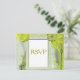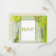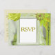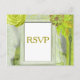 Encuentre hoy mismo la tarjeta RSVP perfecta en WeddingsbyRhoadie. Este diseño verde claro presenta un adorable diseño floral rústico con RSVP escrito en texto verde en la imagen de un marco fotográfico. La parte trasera de la tarjeta está en beige claro con fuente en verde. Solicite su RSVP hoy mismo. Diseño de RSVP: WeddingsbyRhoadie Obra artística temática de otoño en el frente: Oberholster Venita