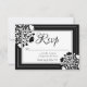 Tarjeta RSVP floral blanca y negra de estilo