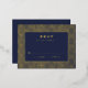 Añada un toque de elegancia a su evento especial con nuestra tarjeta RSVP Geométrica Azul de la Marina. Estas bellas tarjetas combinan la sencillez del diseño moderno con el encanto atemporal de la época Art Déco. Con un patrón geométrico único, realzado con un Relieve metalizado real en su elección de oro, oro o plata rosa. Cada tarjeta es una belleza simple y minimalista que eleva tu evento sin esfuerzo desde el momento en que tus invitados las reciben. Personalizar fácilmente tu RSVP eligiendo un Relieve metalizado y un color de fondo que muestren tu estilo boda.