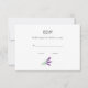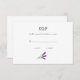 Tarjeta RSVP de boda simple. Línea de nombre y respuesta. La espiral de lavanda sirve como un pequeño toque de color.