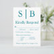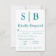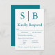Tarjeta RSVP para elección de comida verde azulada con monograma clásico, tarjeta de respuesta con opciones de comida.