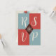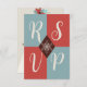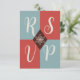 ¡Medio siglo se encuentra con lo contemporáneo en estas tarjetas RSVP de Navidades festivos! La parte delantera tiene un diseño geométrico elegante con letras de marfil en negrita sobre bloques de coral rojo y azul pizarra, mientras que la parte trasera está ilustrada con formas y colores para sugerir un árbol de Navidad estilizado. Introduzca su propia fecha o personalizar de "responder por" para añadir su propia información de personalizado rsvp.