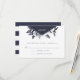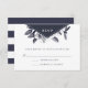 Esta elegante y dramática tarjeta RSVP, diseñada para coordinar con nuestra colección de invitaciones nupciales de orquídeas de medianoche, cuenta con letras azules de medianoche, detalles geométricos modernos y un ilustracion de flores de orquídeas de época.