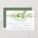 Diseñada para coordinarse con nuestra colección de bodas Wild Meadow, esta tarjeta fresca botánica RSVP con elección de comida incluye un spray de vegetación que cubre la fecha de respuesta deseada y un personalizado acepta y rechaza la redacción. Pide a los clientes que indiquen con antelación la elección de su entrada y que rellenen las opciones de la última línea.