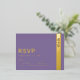 Tarjeta RSVP púrpura. Añada un toque de modernidad a su día especial con esta invitación audaz e intemporal que presenta una impresionante tipografía de Relieve metalizado de oro real y un monograma boda personalizado sobre un fondo morado. Esta invitación a la boda tendrá a sus invitados en el asombro de su gran día antes incluso de haber dicho, ‘lo hago’.