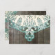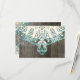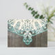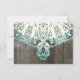 Esta carta RSVP de Country Lace and Wood es de moda y está orientada a la novia tradicional. Un fondo de madera maciza con detalles de cuentas metalizado y encajes de color turquesa crema es perfecto para un boda rústico de estilo rústico y vintage. Coordina con la invitación de matrimonio coincidente.