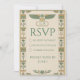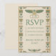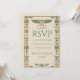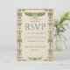 Una cautivadora y majestuosa tarjeta RSVP del antiguo Egipto con textura de papiro, iconos de loto y ankh, perfecta para una suite de boda divina en verde y dorado. Opciones de respuesta y fecha totalmente editables para un acabado premium de calidad de museo.