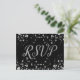 Una apariencia de confeti plateado con una tarjeta RSVP de fondo negro.