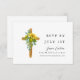 Tarjeta RSVP simple de Bautismo Cruzado Rústico