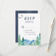 Esta sencilla tarjeta RSVP de Rocky Mountain es perfecta para un boda al aire libre. El diseño presenta un paisaje natural pintado de azul y verde con pinos acuarelas, pájaros y montañas.