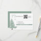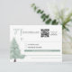 Facilite a sus huéspedes la confirmación de su asistencia con nuestra tarjeta RSVP Winter Wonderland, que combina perfectamente con la serena elegancia de su tema boda. Con un delicado gráfico de pinos acuarelas y una fresca paleta verde, esta tarjeta combina el diseño moderno y la belleza natural. Además de las opciones tradicionales de RSVP, esta tarjeta incluye un código QR personalizado, que ofrece a sus huéspedes el convencimiento de responder en línea. La combinación de elementos de diseño clásicos y contemporáneos en la tarjeta asegura que su planificación boda sea perfecta y elegante. Ideal para las parejas que buscan una sofisticada suite boda de inspiración natural, esta tarjeta RSVP es el complemento perfecto para sus invitaciones invernales.