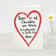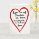 This Valentine’s Day card delivers humor with a bold, hand-drawn look. At the center is a bright red heart sketched with uneven, textured lines that give it a cozy, handmade feel. The heart sits on a soft off-white background that keeps the focus on the artwork and message. Inside the heart is a short four-line poem written in casual black lettering. It begins like a traditional rhyme, “Roses are red. Chocolates are brown,” then flips expectations with, “You’re getting neither, so calm down.” The mix of a familiar format and an unexpected ending makes the message funny and memorable. This card is perfect for anyone who enjoys poking fun at Valentine’s Day traditions while still sharing affection.
