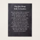 Cartas de Oración del Funeral Rustic Chalkboard Sympathy. Esta sencilla y única tarjeta de plegarias conmemorativas incluye 3 fotos, en un diseño rústico de pizarra. Front "In Loving Memory" Personaliza esta tarjeta de oración funeraria con fotos, nombres y fechas de sus seres queridos y sentimientos. Volver ~ Poema 'Que siempre camines en sol', que puede ser personalizado, por favor, contacte si quiere un diseño con un poema específico distinto a. Esta tarjeta de oración conmemorativa será un tesoro agudo, para los servicios funerarios y la celebración de la vida. DERECHOS RESERVADOS © 2020 Judy Burrows, Black Dog Art - Todos los derechos reservados. Tarjeta Rustic 3 Photo Memorial Funeral