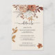 Esta elegante tarjeta de recinto boda de otoño cuenta con flores acuáticas de naranja y terracota quemadas, rosas de jardín boho y caligrafía escrita a mano. Perfecto para incluir detalles de recepción, alojamiento o sitio web en una suite nupcial rústica, romántica y moderna en otoño.