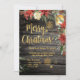 Una elegante y elegante tarjeta de Navidades de vacaciones en un solo lado de 5 por 7 pulgadas de tarjeta semi brillo. Un clásico y rústico jardín de madera con flores rojas vacacionales y vegetación perenne, con una brillante caligrafía dorada escrita a mano y una salpicadura de delicados copos de nieve, deseando a sus beneficiarios unas vacaciones alegres y un feliz año nuevo. La parte trasera de la tarjeta dice Feliz Festividad con el nombre de tu familia.