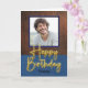 Tarjeta Rustic Brown and Blue leather Gold Script Birthday