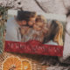 Tarjeta navideña para Navidades de foto presupuesto de plástico rojo rústico. Haga clic en el botón personalizar para personalizar este diseño con sus fotos y texto.