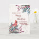 Feliz Navidad para la ahijada y su tarjeta familiar con vegetación acuática rústica y patrón cardinal y vintage de madera.