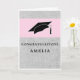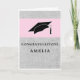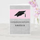 Rústica tarjeta de graduación de Gris Rosado con nombre de graduado. Tarjeta de graduación con gorra de graduación, texto Felicitaciones y un nombre del graduado en la parte delantera - personaliza con tu nombre. El texto está en un fondo rústico gris y la gorra es rosa. Personalice el texto dentro de la tarjeta para que se ajuste a sus necesidades.