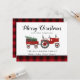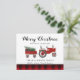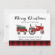 Rustic Merry Christmas Farmhouse Family Name Holiday Card - Descanse a su familia y amigos una Feliz Navidad esta temporada navideña con un toque rústico de estilo casero. Nuestra tarjeta de Navidades de campo única incluye un tractor de granja vintage que lleva un árbol de Navidad fresco de la granja y un regalo para las vacaciones. (Todo el texto es editable). Feliz Navidad está en una fuente de bonito, guión. La tarjeta se personaliza con el nombre de su familia y el de su familiar. La tarjeta forma parte de una colección. Diseñado por Beverly Bainbridge Magnolia & Thistle