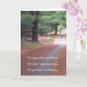 En esta tarjeta de bienvenida de ocasión, un camino conduce a los árboles, con una cita inspiradora en blanco en el fondo. El texto dice "Es imposible" dijo Orgullo, "Es arriesgado" dijo Experiencia, "No tiene sentido" dijo Razón. El interior dice "Inténtalo..." susurró el corazón.