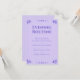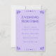 Esta carta inspirada en el tarot te ayudará a terminar las noches con una actitud positiva. Presenta un elegante encabezado de serif, y una lista de las tareas nocturnas, incluyendo meditación, periodismo de gratitud y desdoblamiento al leer un libro. Puede editar este texto para adaptarlo a su rutina. La combinación de colores es un bonito color púrpura, que también se puede cambiar según sea necesario. Para crear un mazo de tarjetas inspiradoras, edite una tarjeta, añada al carrito, edite de nuevo, añada al carrito, repita. Guarda esta tarjeta junto a tu cama, así que es lo último que ves por la noche. ・・ Para más material de papelería espiritual, visite mi tienda Zazzle.com/In_The_Vortex