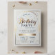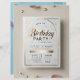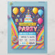 El diseño "All-in-One Birthday Party Invitation" presenta un diseño vibrante y festivo con globos coloridos, confeti y un ilustracion de pasteles de cumpleaños. La parte superior muestra un texto lúdico que invita a los invitados a la celebración, mientras que la parte inferior proporciona espacio para detalles esenciales como la fecha, hora, lugar e información de RSVP. Con un fondo luminoso y alegre en tonos gradientes, esta tarjeta es perfecta para crear emoción y establecer un tono alegre para el próximo fiesta. ¡Ideal para celebraciones infantiles o para cualquier fiesta de cumpleaños divertida!