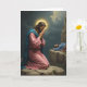 This design shows a kneeling man on rugged stone, wrapped in soft rose robes with a deep blue mantle, his hands clasped and head bowed beneath a thin ring of golden light. Dark, rolling clouds crowd the sky, while the warm glow around him cuts a gentle path through the shadows like a quiet promise. Off to the right, another figure lies stretched out on an old stone ledge, dressed in muted blue and earthy brown, their relaxed posture reading like trust between close companions. The rocky ground is rough and uneven, dotted with a few small patches of green, and a single 🌷 near the edge adds a tender note to the stark setting. Strong contrasts of light and shade shape the folds of fabric, making the kneeling figure’s shoulders look both steady and vulnerable. Any greeting text could sit along the lower margin in soft gold, with a smaller line in pale blue tucked near the right side by the resting figure, and a tiny 🐇 placed beside it. The scene is framed by jagged stone in the foreground, with the brightest highlight falling across the kneeling figure’s hands and the resting figure’s sleeve.