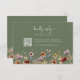 Haga su respuesta sin esfuerzo y con estilo con nuestra tarjeta RSVP Sage Green Boho Wildflowers, que incluye un excelente guión de "Kindly Reply" para un toque elegante. Decorado con flores silvestres pintadas a mano en ricos tonos tierra y un relajante entorno verde salado, este diseño complementa perfectamente su suite boda. El código QR incluido añade una forma moderna y práctica para que los huéspedes puedan responder, combinando encanto eterno con funcionalidad. Asegúrese de que su proceso RSVP sea tan ininterrumpido y memorable como su gran día con esta tarjeta cuidadosamente diseñada.