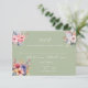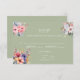 Invite a sus huéspedes a que respondan con estilo con esta tarjeta RSVP de flor salvaje verde sabrosa, inspirada en la belleza caprichosa de los bodas del cottagecore. Delicados florales dibujados a mano y suaves tonos verdes crean un ambiente romántico e inspirado en la naturaleza. Perfecto para celebraciones rústicas, de jardín, primavera o al aire libre, esta tarjeta de respuesta es fácil de personalizar con tu propia redacción, ya sea que estés planeando un evento formal o un asunto relajado. Parejas hermosas con invitaciones a juego de flores silvestres y papel de boda verde sabio para una suite cohesionada y encantadora.