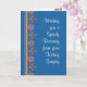 Una tarjeta de bonito Get Well para alguien que está teniendo cirugía renal, con un patrón fronterizo de Naranja, flores rosas y azules y un motivo de Rangoli, de un collage de papel pintado a mano de Judy Adamson. Parte de la colección Posh & Painterly 'Rangoli'.