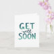 La tarjeta de bienvenida "get well" que diseñaste es sencilla pero llamativa. Los brillantes colores gradientes de azul y verde en las palabras "GET" y "PROON" le dan un toque alegre a la carta, mientras que el elegante guión cursivo azul oscuro de "well" le da un sentido de calma. El tipo de letra manuscrito le da un toque personal, perfecto para enviar buenos deseos a alguien que necesite comodidad y sanación. En general, el diseño es vibrante, edificante y seguro que le dará una sonrisa a la cara del destinatario. 🌟 🌈