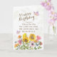 La tarjeta de felicitación de cumpleaños de las escrituras inspiradoras representa un hermoso diseño de jardín floral de acuarela que incluye girasoles amarillos, flores pradera rosadas y naranjas y mariposas. Presenta la Biblia Verse Salm 118:24, "Este es el día que el SEÑOR ha hecho; NOS RECHAZAREMOS y nos ALEGAREMOS". La escritura interna Jeremías 31:3, "Te he amado con un amor eterno"._