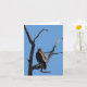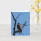 El rapaz está sentado en las ramas desnudas de un árbol muerto, mirando majestuosamente por encima del hombro contra el profundo cielo azul. El texto interior "La fuerza y el coraje nos ayudan a viajar por los caminos difíciles de la vida". puede ser personalizado.