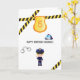 Tarjeta de saludos de fiestas con temática policial, con un sencillo diseño de texto en blanco y negro, adecuado para niños y chicas personalizable a sus detalles del evento.