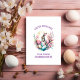 Celebra las vacaciones de Pascua enviando a tu nieta favorita [o personalizar] nuestra tarjeta "¡Saludos de Pascua!" Una hermosa acuarela que representa un conejo gris/gris sentado detrás de unos adorables huevos de Pascua pintados, bordeados por hermosas flores rosas.
