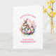 Celebra las vacaciones de Pascua enviando a tu nieta favorita [o personalizar] nuestra tarjeta "¡Saludos de Pascua!" Una bonita acuarela que representa un conejito de Pascua, bonito, gris y blanco, decorado con gusto, pastel, huevos de Pascua y una diminuta decoración floral.