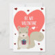 "Be my Valenitne" tarjeta de saludo con un corazón grande y una ardilla linda sosteniendo un regalo