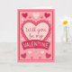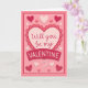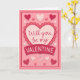 Esta tarjeta del Día de San Valentín presenta las palabras "¿Quieres ser mi San Valentín?" sobre un fondo rosa con varios corazones alrededor. El interior dice simplemente "Feliz Día de San Valentín", que se puede personalizar o eliminar.
