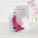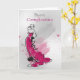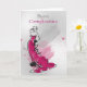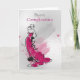 Saludo contemporáneo de cumpleaños con mujer en un elegante vestido, con colores mezclados y estilo de esbozo, con salpicaduras de acuarela en un fondo gris mezclado. Glückwünsche zum Geburtstag = Feliz Cumpleaños En Alemán