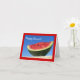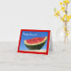 Desee a sus amigos al verano feliz - o un feliz el 4 de julio - con esta rebanada jugosa de sandía. ¡Modifique el color, la fuente, y los mensajes del fondo para requisitos particulares en el frente y el interior para decir exactamente lo que usted quiere!