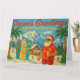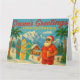 Lleva el sol de California a las fiestas con esta divertida y festiva tarjeta. Santa, con gafas de sol y camisa hawaiana, disfruta de la escena playera invernal con tablas de surf decoradas, palmeras y montañas nevadas. Una cabaña acogedora cubierta de nieve añade calidez a la divertida mezcla. Ideal para surfistas, amantes de la playa o cualquiera que prefiera su Navidad con un toque de alegría costera.
