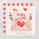 Tarjeta de felicitación del Día de San Valentín con un sobre de acuarela adorable y un juego de palabras 'enviándote amor' en la parte frontal y un patrón de corazones rojos en la parte trasera. Visita nuestra tienda para ver más artículos de esta colección.