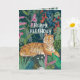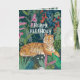 Tigre de la jungla vida silvestre verde y rosa tienen tarjeta de tigre de cumpleaños tropical.Obra de arte original de Caroline Bonne Müller