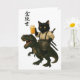 Tarjeta Samurai Cat with Beer & T-Rex | Retro Japanese Art